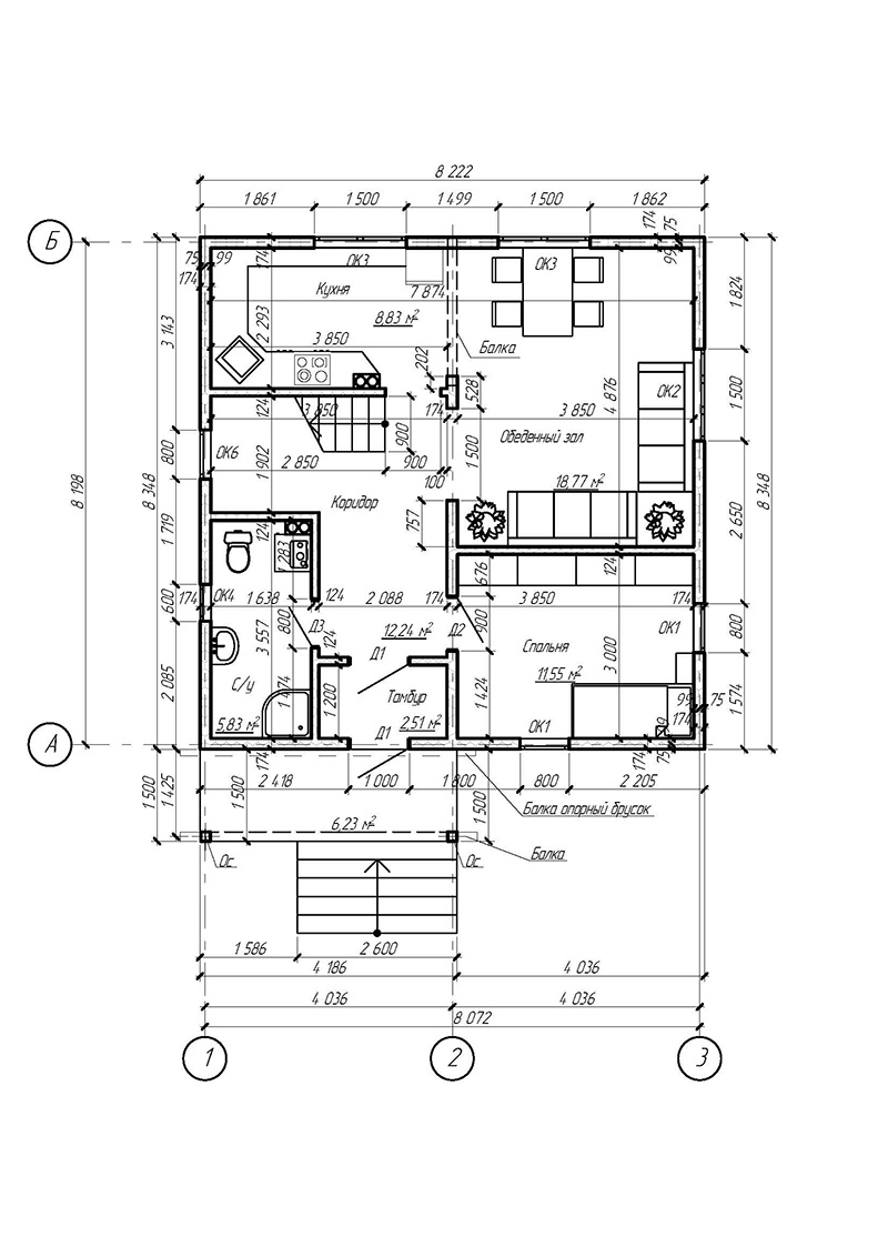 Фундамент — деревянный ростверк на винтовых сваях
