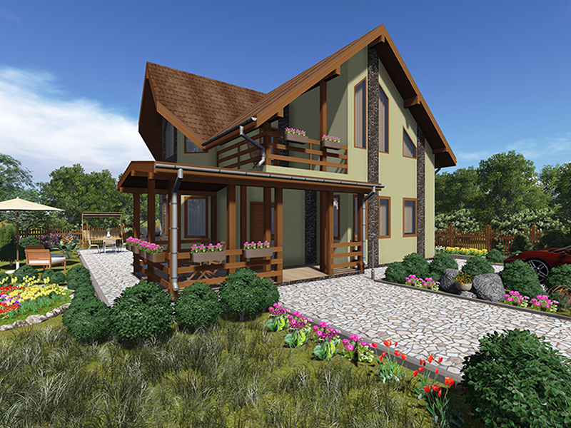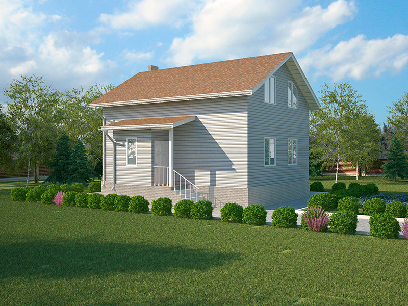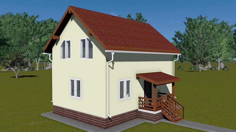 Простой в строительстве дом с двускатной крышей, подойдет, также, для узкого участка.